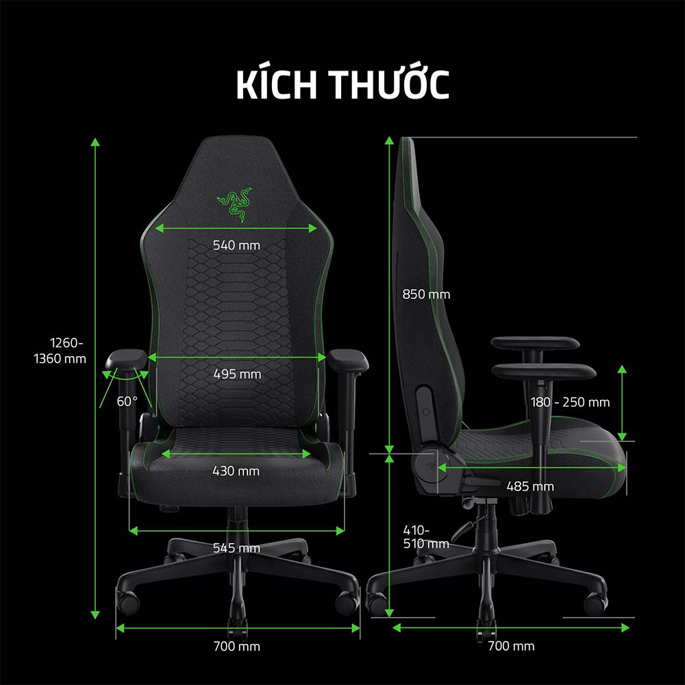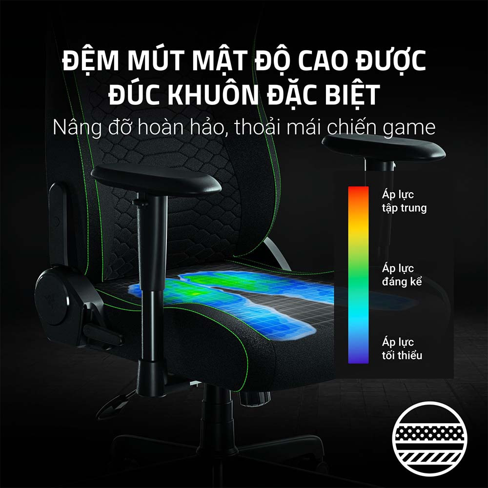 Đế ngồi của ghế Razer được mở rộng lên tới 545mm, mang lại sự phân bổ áp lực đồng đều hơn ở mọi tư thế. Thiết kế viền thu gọn giúp cơ thể được định vị chính xác, tạo sự thoải mái vượt trội.